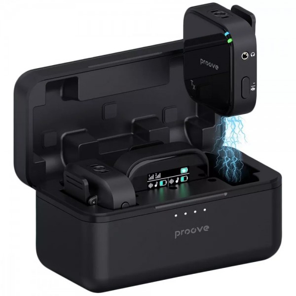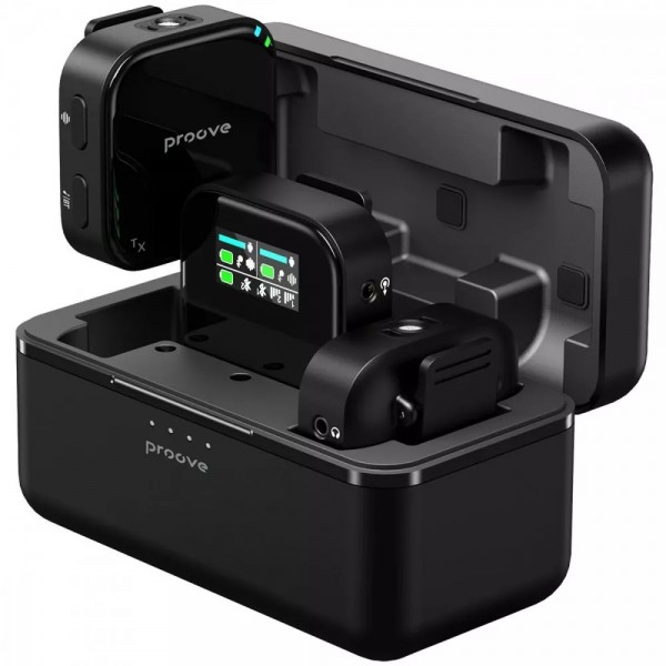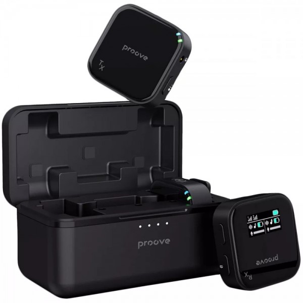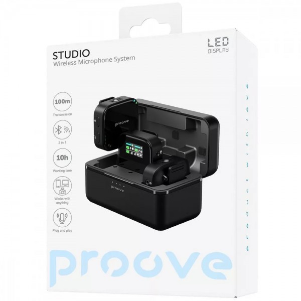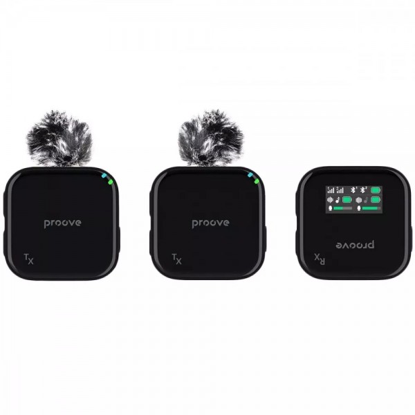 Proove Studio поставляется с двумя передатчиками, каждый из которых оснащен встроенными микрофонами. Оба передатчика поддерживают всенаправленный звук, что делает их идеальными для проведения интервью с несколькими людьми или работы в небольших студиях.