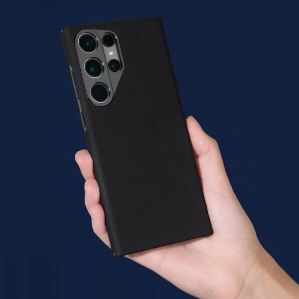 Карбоновая вставка на задней панели делает аксессуар универсальным по стилю, приятным на ощупь; благодаря текстуре он не скользит в руках.